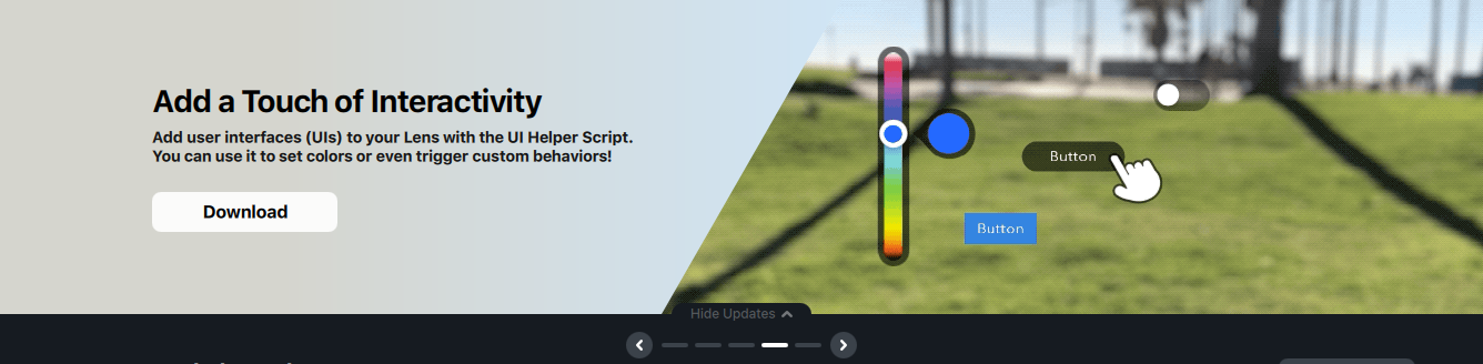 You can keep up to date with the latest feature, new examples or tutorials, or what you’re up to in the Lens Studio banner.