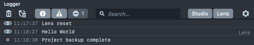 The Logger panel provides insights into the state of your Lens as well as Lens Studio itself.