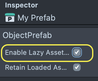 • Lazy Load Assets: Load the contents of the prefab just before instantiating.
