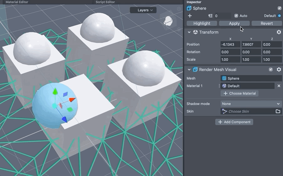 • Revert: Undo any changes made to a Prefab Instance, reverting to the state represented by the Prefab Resource