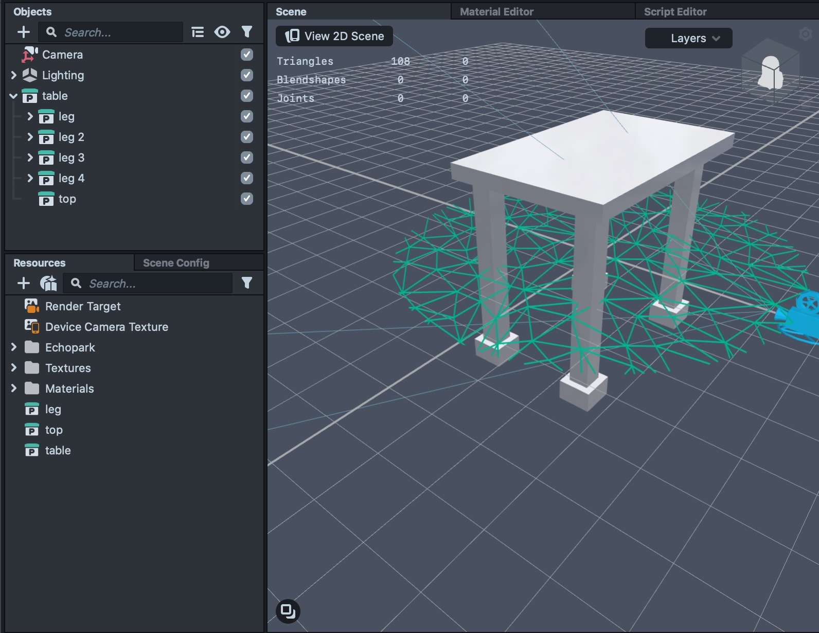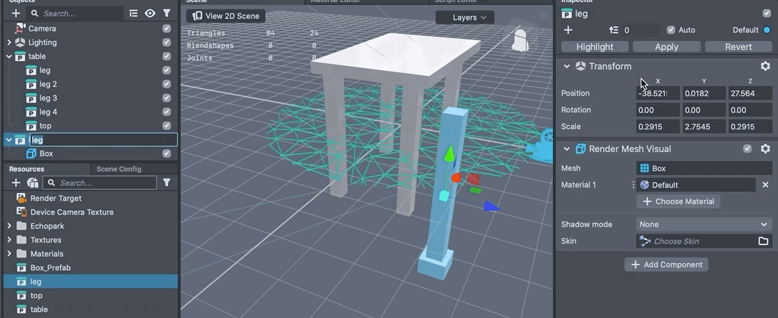 In the example below, we have a Table Prefab made of a Top Prefab and several Leg Prefabs.