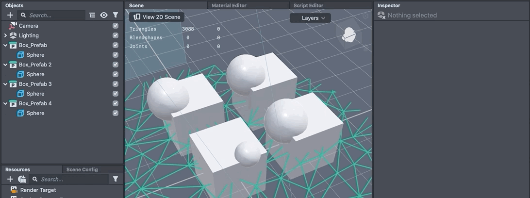 3. A Scene Object with the same name as your Prefab Resource will be added to the Scene, and to the Objects panel