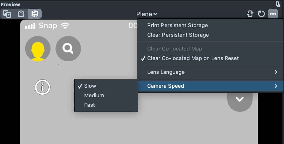 The Preview panel allows you to see what your Lens would look like within Snapchat without having to open your device. The Preview panel updates in real time as you make changes to your scene. The Preview panel has various modes for visualization which are detailed below.