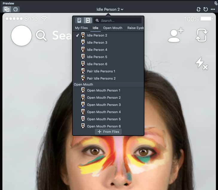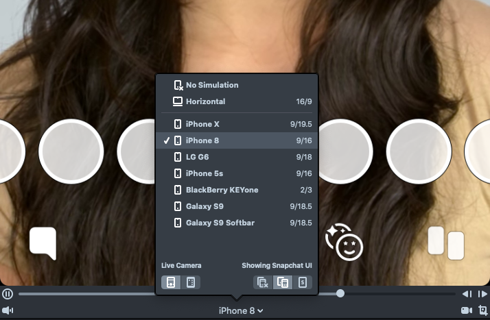 Your Lens might look different on different devices due to the screen size and device's native UI. At the bottom of the Preview panel, you can choose from a set of devices to simulate how your Lens looks like on that device.