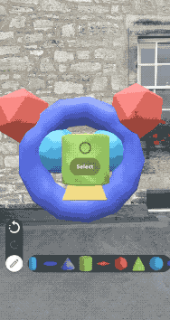 When the edit mode toggle is tapped, the lens will enter an edit mode where individual AR objects can be selected, manipulated, or deleted.