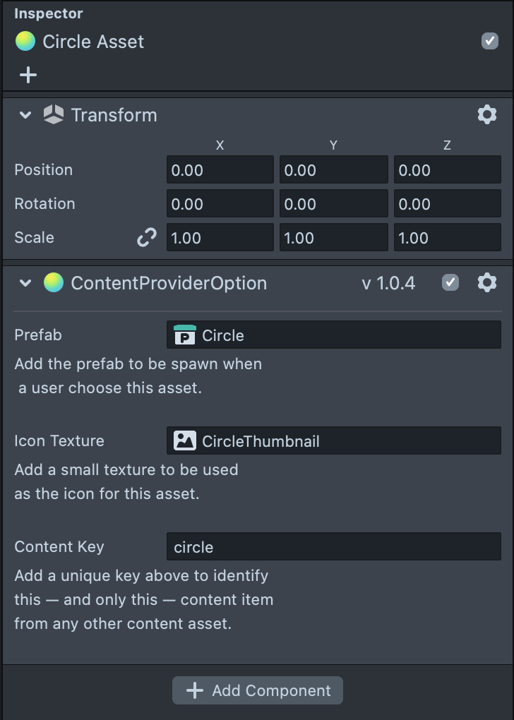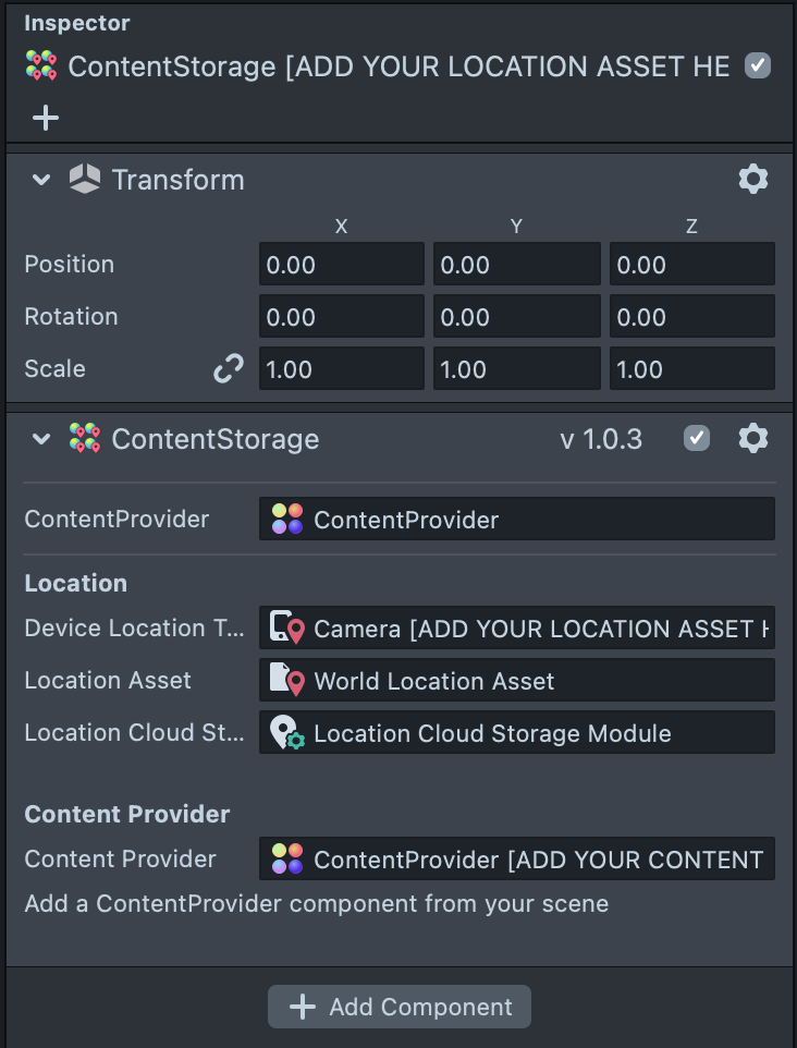 - Add a Content Storage component to your scene which can be linked to a Content Provider component.