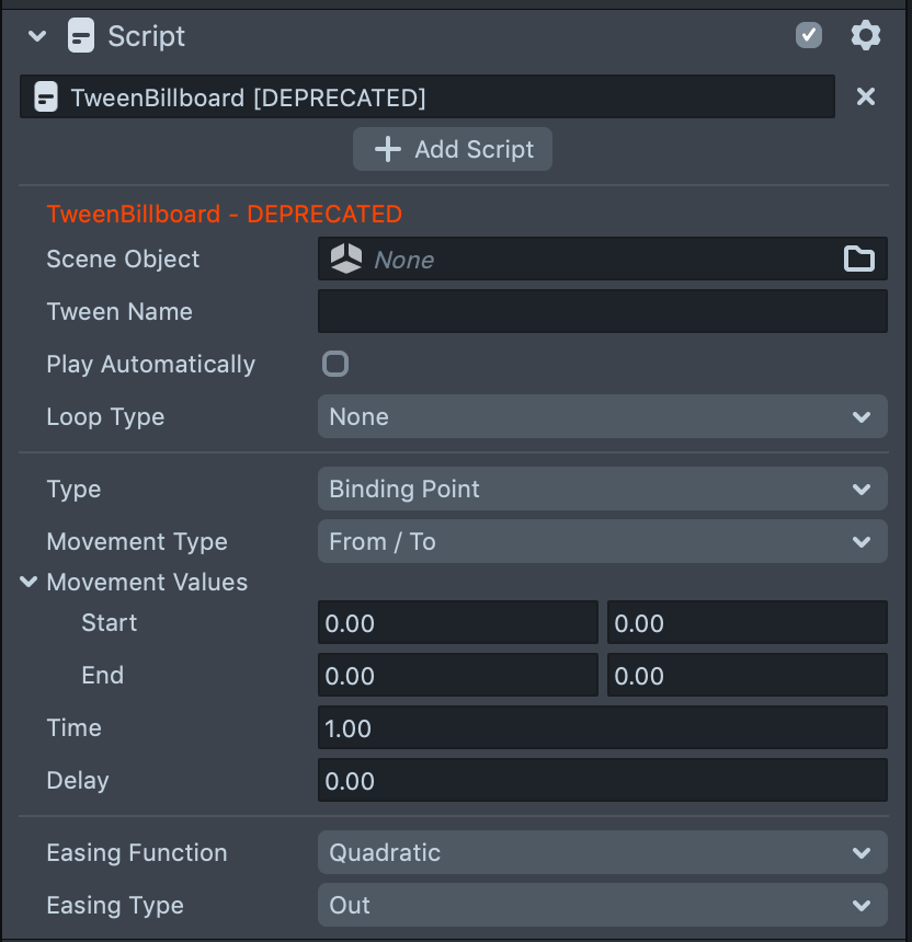 - Type: The type of Billboard tweening. Binding Point tweens the Billboard's position using the