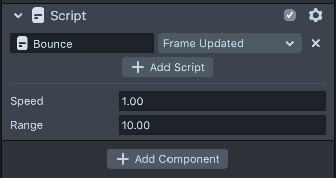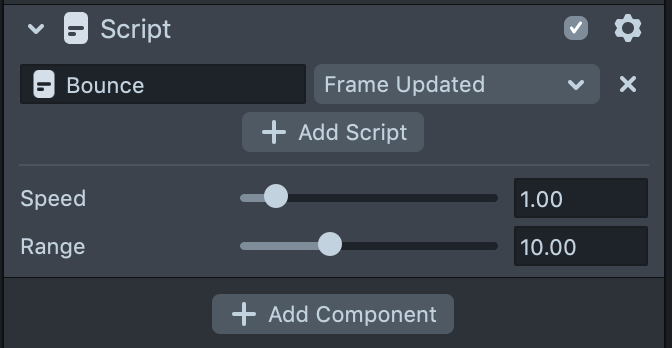 To learn more about the different UI elements you can add to Script Components, visit the Custom Script UI guide.