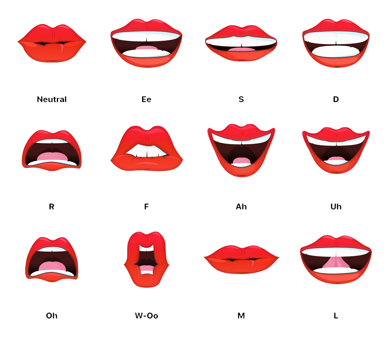 Here are the 12 mouth shapes as a reference.