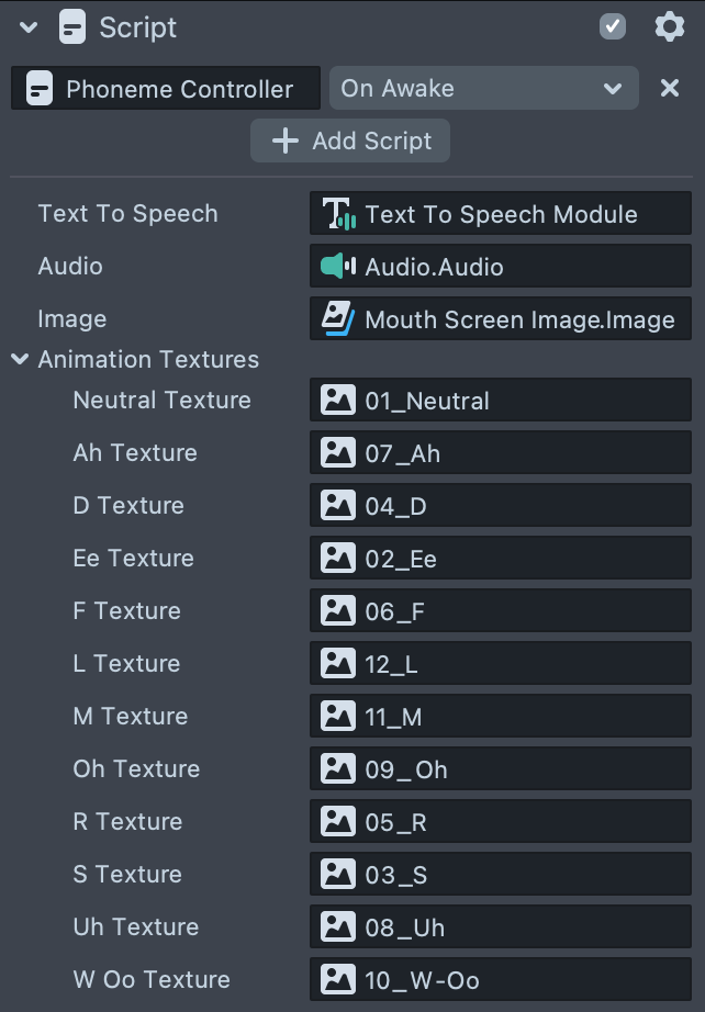 Let’s go back to the script to animate the textures based on phoneme info.