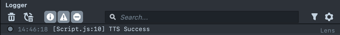 Now save the script, and reset the Preview panel. We can then see the “TTS Success” in the logger, as well as hear the TTS Audio playing.