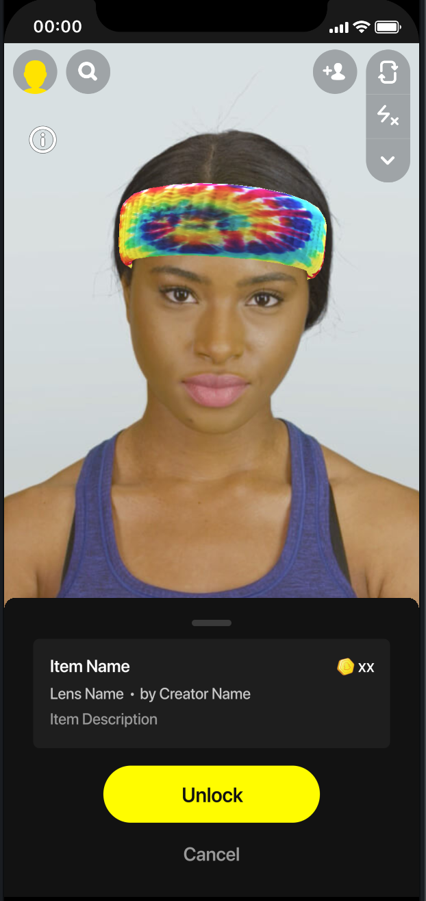 - Streamline your Lens: Put Snapchatters into the Lens experience right away. Minimize steps to find and unlock digital goods. Use clean, simple, uncluttered UI.