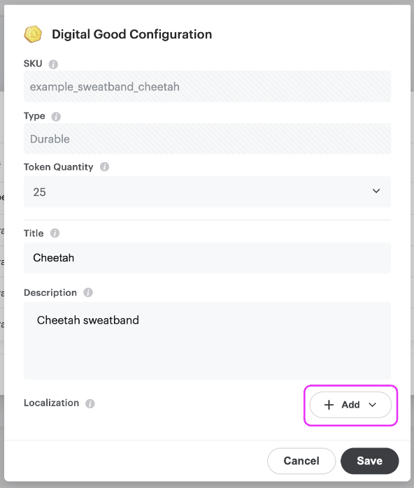 - For consumable items, enter the Quantity that is added to the digital good’s balance on unlock.