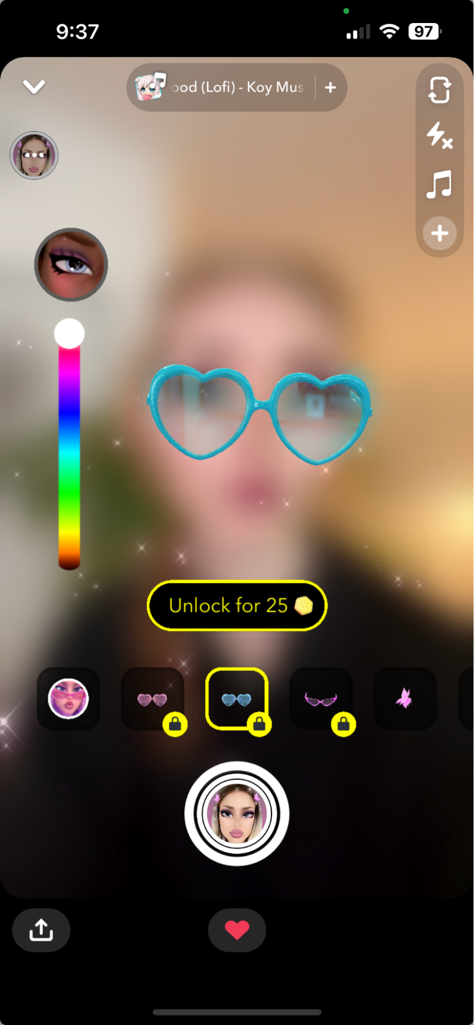 - Item, e.g., one free hat, then redeem Snap Tokens to unlock other accessories