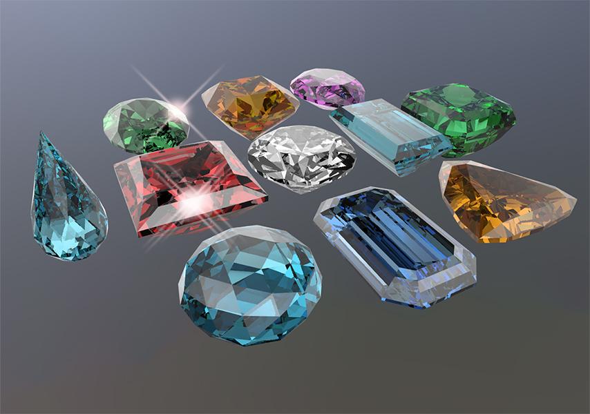 The first thing to consider when rendering your gem is the mesh itself. Nearly all of the optical effects that occur in gemstones are due to the way they are cut– in other words, their shape. We have provided a new Gemstones Pack asset on the Asset Library (shown here) that has several examples of popular gem cuts found in real life.