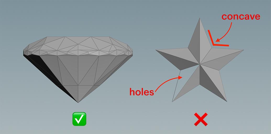 - Similarly, geometry with appendages will not look good (while also breaking the convex rule).