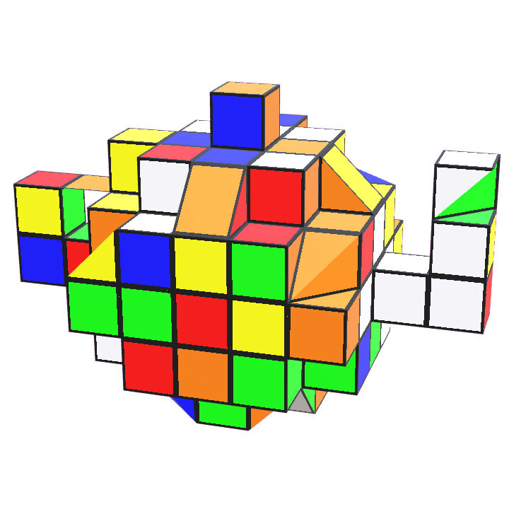 Transforms any object into a 3D Mosaic! Controls for cube size and shuffling the colors.