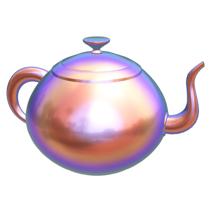 A customizable iridescence effect where the colors shift with the angle of illumination, layered on our standard PBR model.