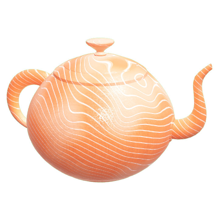A procedural salmon material with controls for pattern direction, scale, and how long it’s been cooked for. Sashimi anyone?