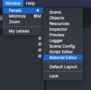 In Lens Studio you can find the Material Editor window under Window > Panels > Material Editor, if it's not already shown in your layout.
