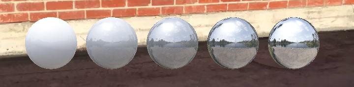 Single value controlling how metallic the material is. The value ranges from 0 to 1, 0 being non-metallic and 1 being metallic. When the metallic level is higher, it means the mesh surface reflects more and its albedo color becomes less visible. When the number is set to 1, the surface color will be fully driven by the specular reflections.