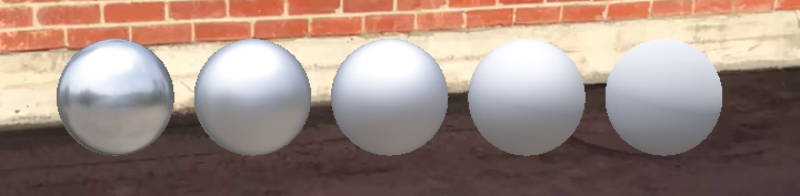 Single value with an expected range 0 to 1, representing how blurry or sharp a specular reflection is. This controls the amount that light is diffused when it bounces off the mash surface. Rougher surfaces are less reflective and have broader specular highlights. Bear in mind that the specular reflectivity response of the mesh surface is modified by both Metallic and Roughness.