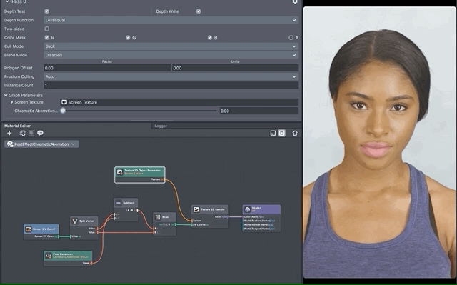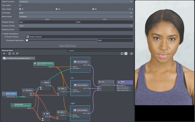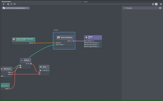 Now, let's make a chromatic aberration effect. The process can be broken down into two steps: offsetting screen texture and assigning RGB colors.