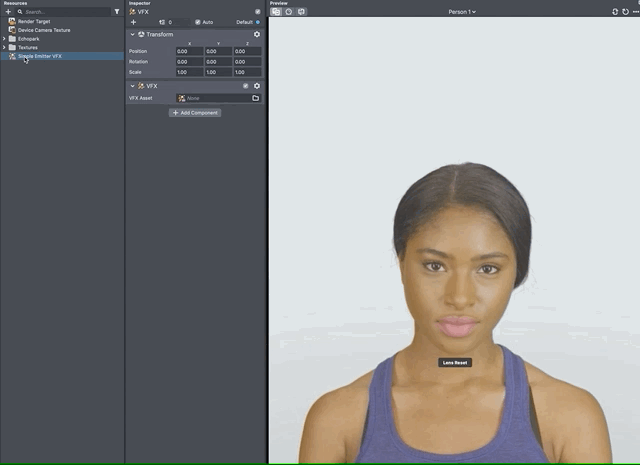 Lens Studio comes with two built-in VFX Assets: Empty VFX and Simple Emitter VFX.