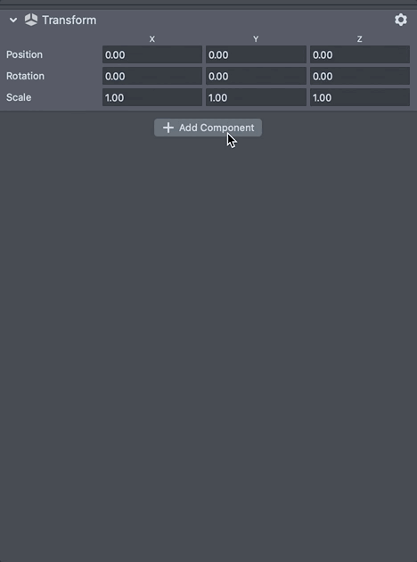 The VFX Component can be created like any other component: on a Scene Object, click the + Add Component button and search for VFX.