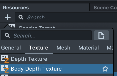 The Body Depth Texture provides you with a person's depth for every pixel. To use it, add a Body Depth Texture in the Resources panel: