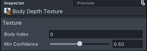 The Body Depth Texture also provides a threshold on the minimum allowable confidence level. Pixels with a confidence lower than this threshold will be set to the Body Depth Texture’s far plane, which is set to 10 meters by default.