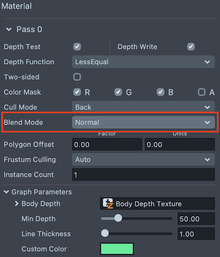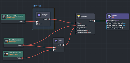 Notice that the output of the Body Depth Texture parameter is Depth.x.