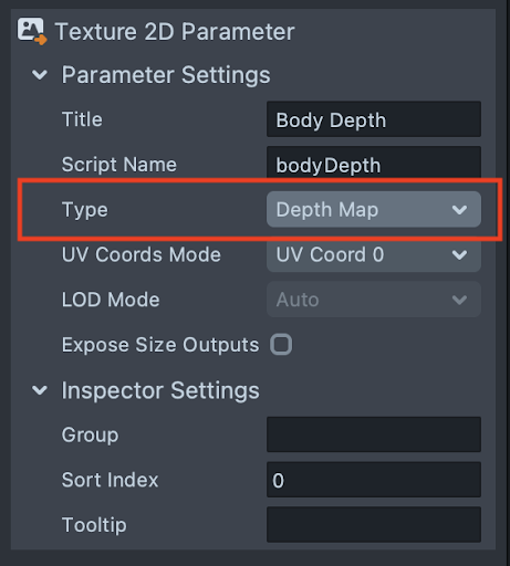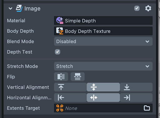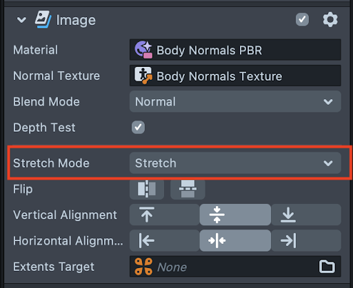 Notice that the Stretch Mode should be set to Stretch so that the Body Depth Texture covers the whole screen.