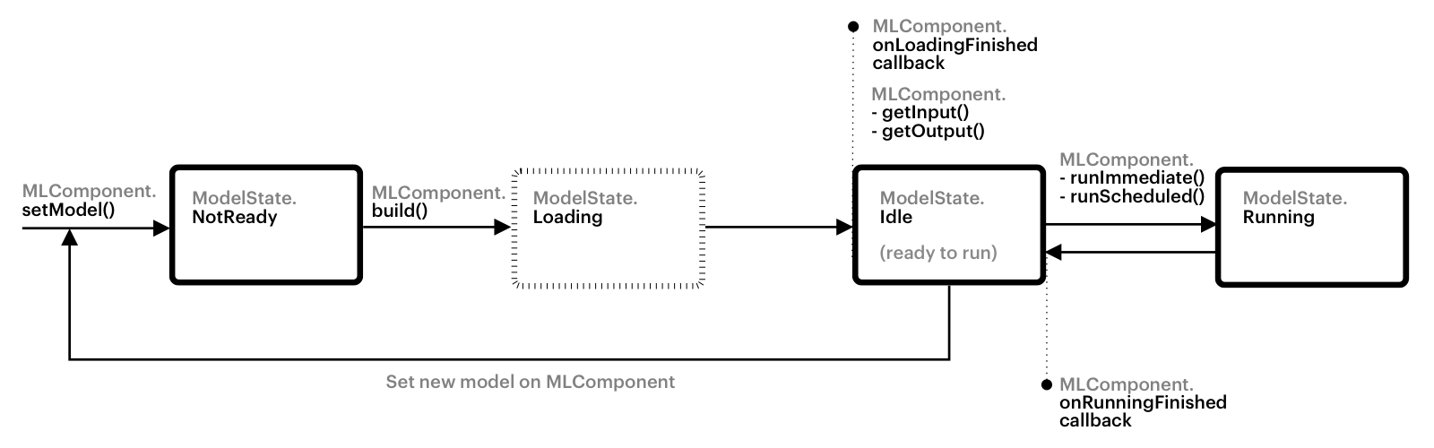 runImmediate(true): runs ML Component once. Next line of code won’t be executed until the model finishes running. Output can be processed right away.