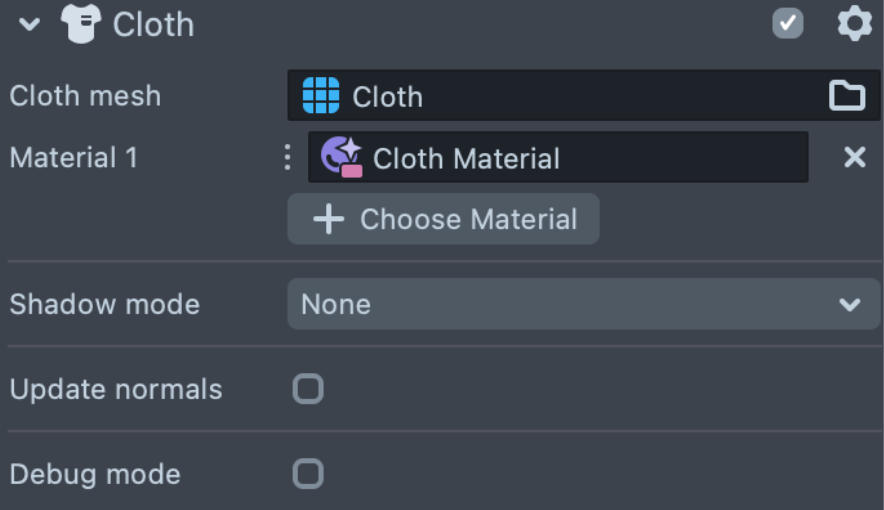 clothVisual.bendMode = ClothVisual.BendMode.Isometric;