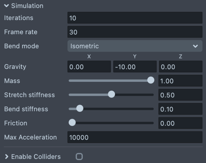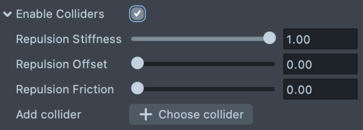 • **Enable Colliders : determines whether collision repulsion is enabled with collider models.