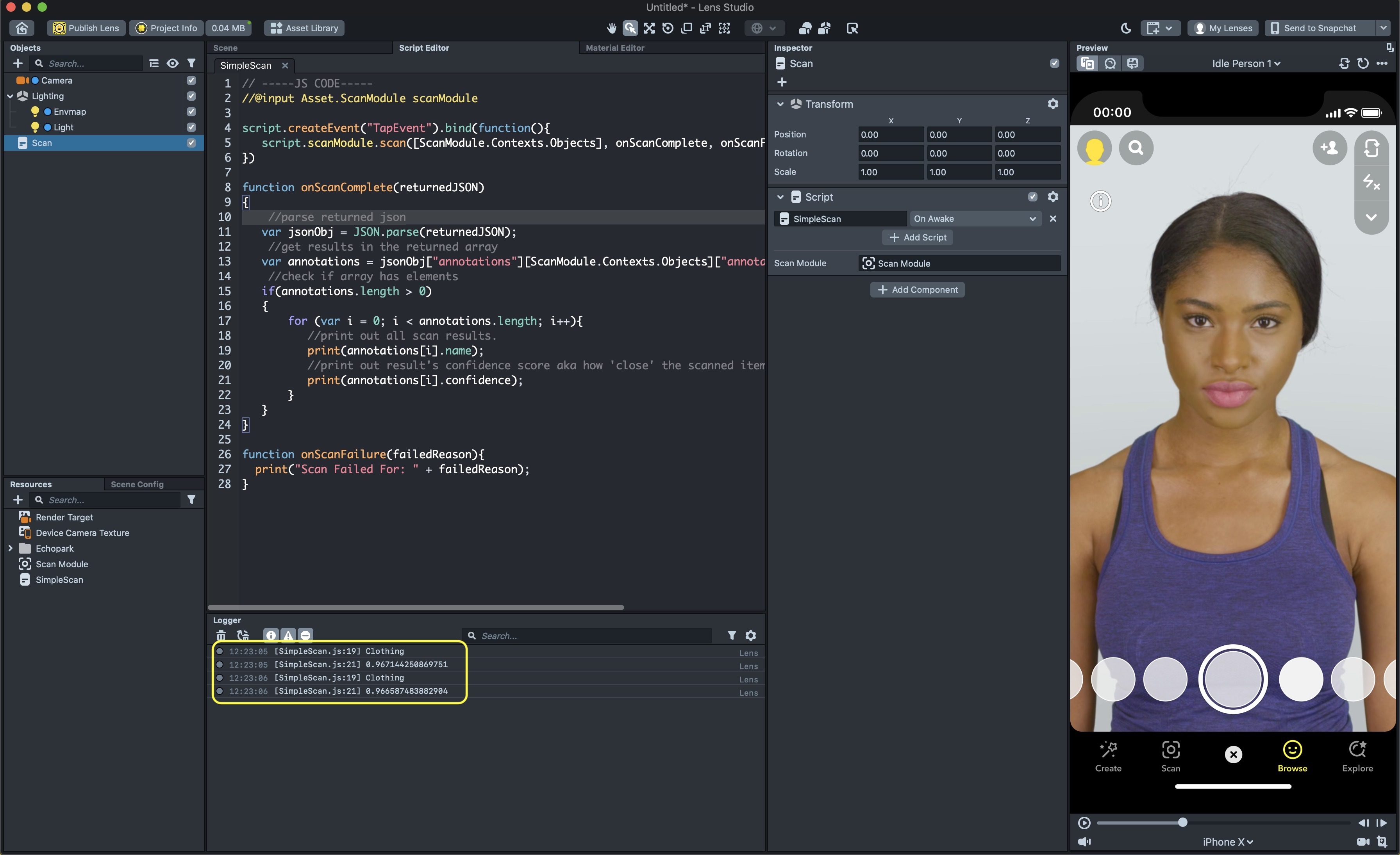 The Scan function allows users to scan objects, places, and cars in the world with a massive database of item labels within a lens. It leverages Snap’s Scan technology to enable your Lens to recognize many different subjects.
