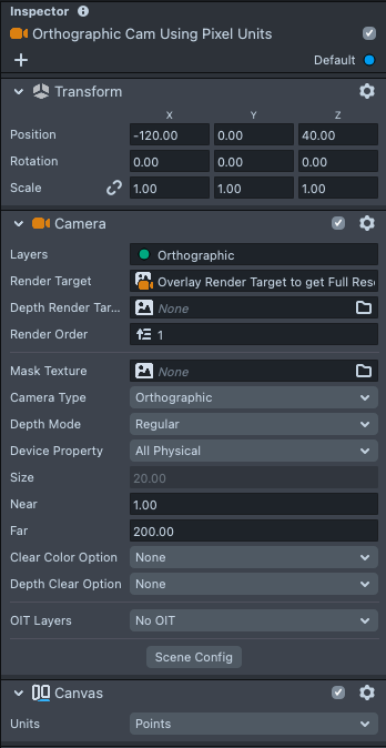 {x: 11.1111, y: 20} - With Canvas component set to Pixels settings, on Overlay Target: