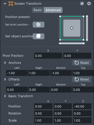 Screen Transform Properties
