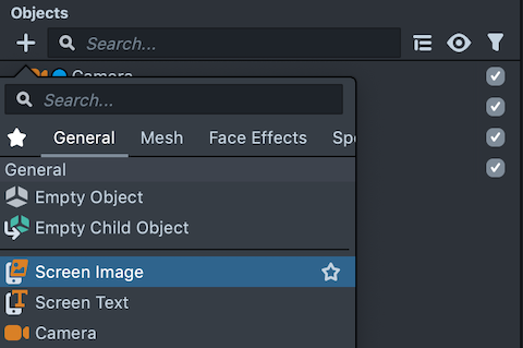 To create a Face Texture resource, first click the "+" button in the Resources panel. Then, select Face Effects -> Face Texture.