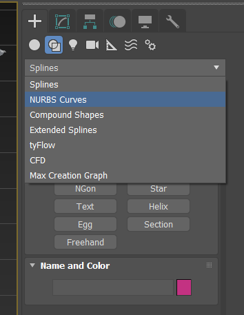 Switch to front view, then go to the Curves/Surfaces section, and select the spline object.