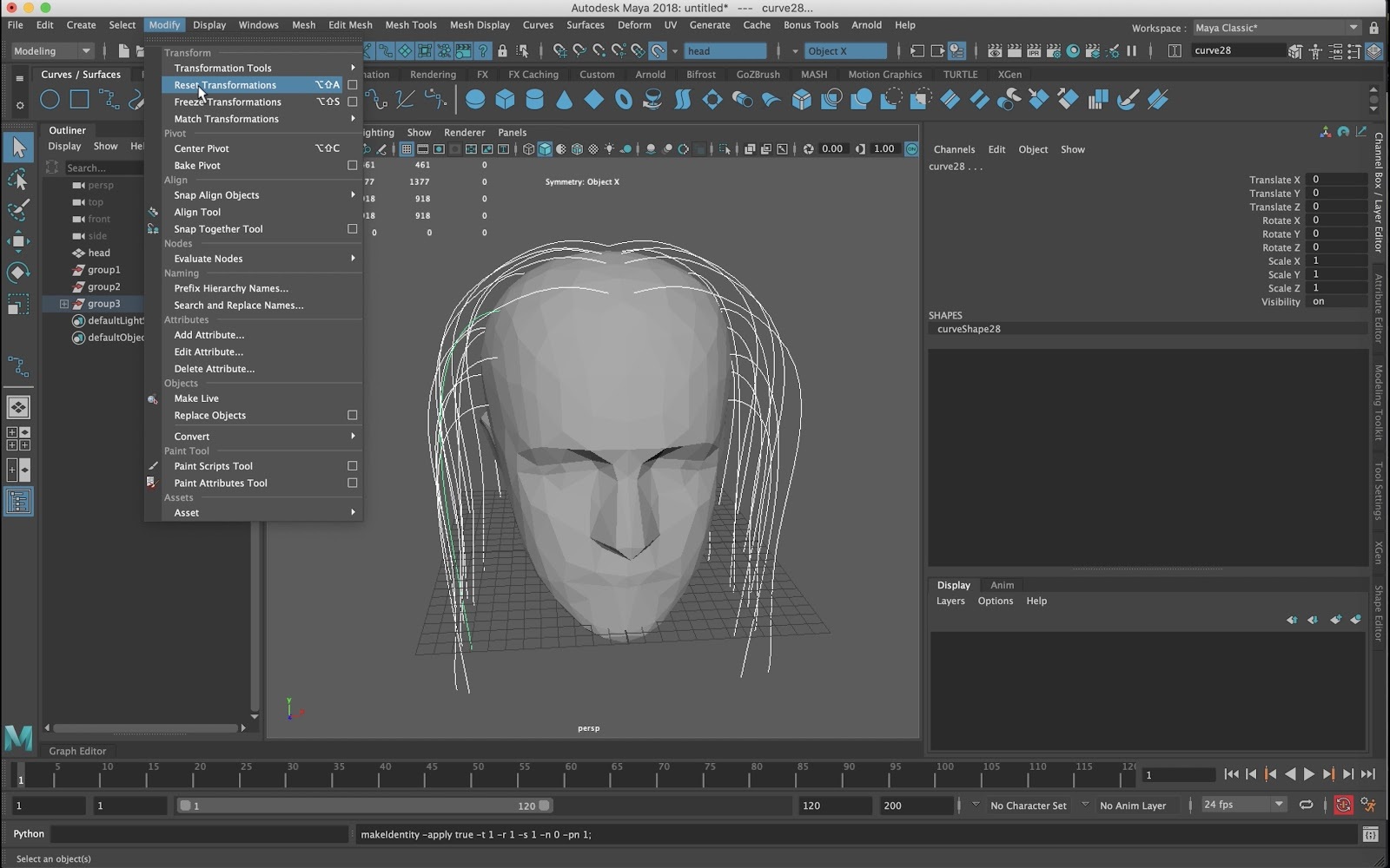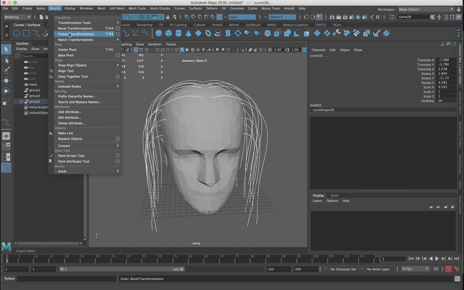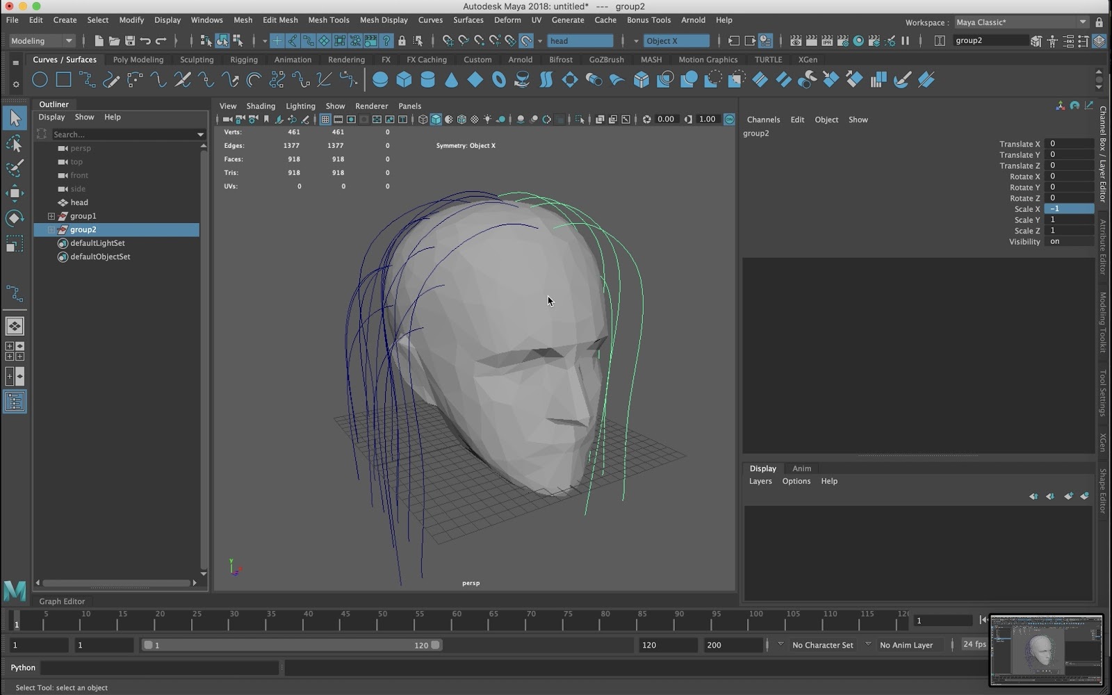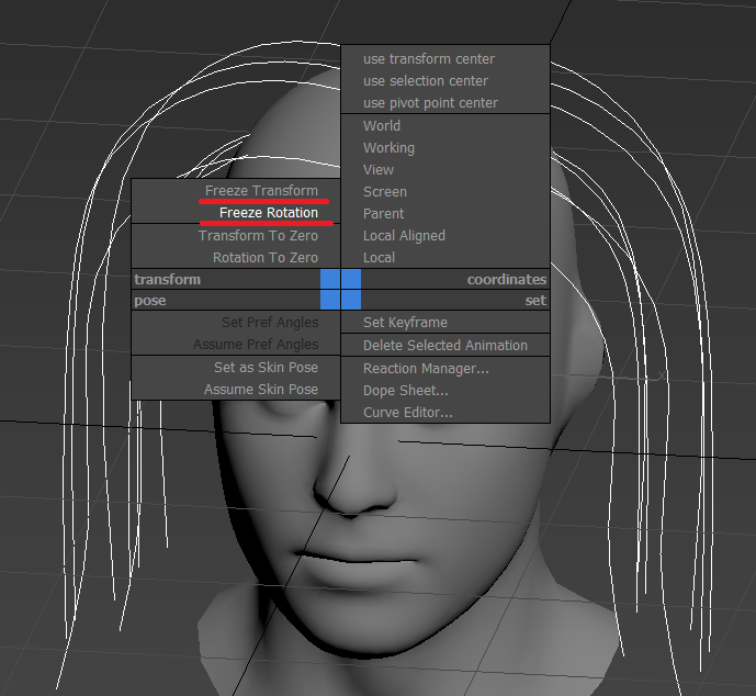 Once hair guides are grouped repeat step 2 so that group pivot is also at 0,0,0. Now you’re ready to export to FBX !