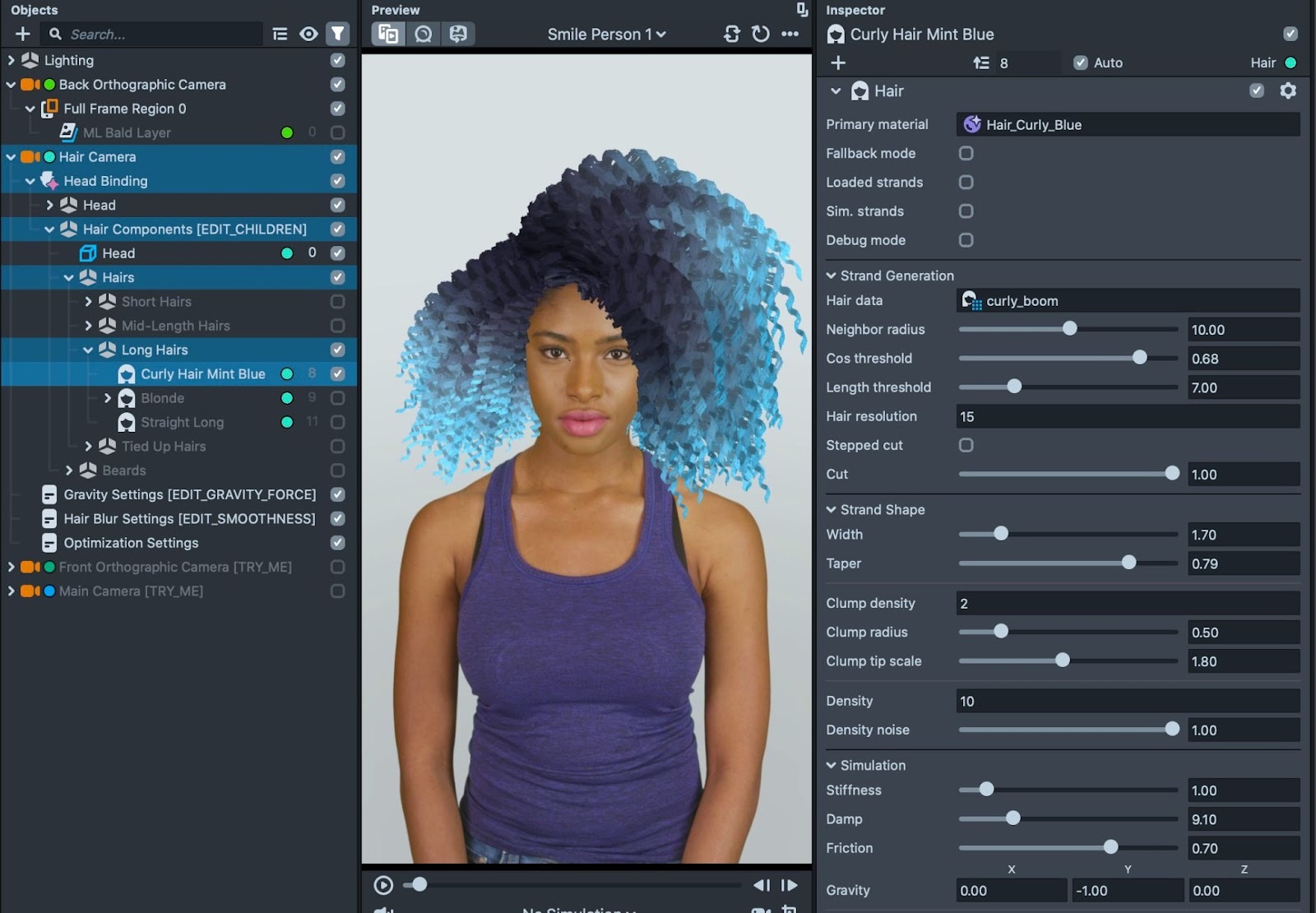 The Hair Simulation Component is used to simulate hairstyles with realistic lighting and physics.