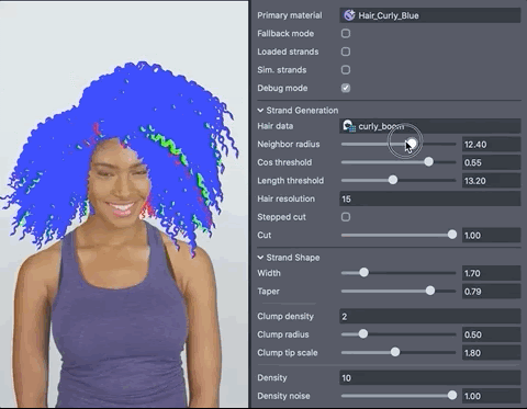 It’s best to turn onDebug mode while adjusting these 3 parameters to see how they affect the hair simulation!
