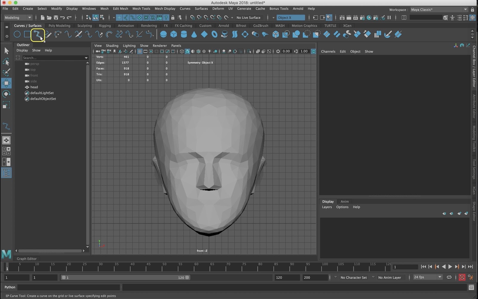 First let’s open the head template in Maya so we have a head shape as reference when we create our splines.