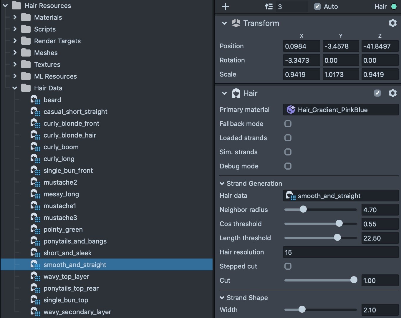 We have provided a handful of hair strands in the Hair Data folder. But we also encourage creators to create their own hair spline objects to bring more dynamically designed hairstyles to Lens Studio!