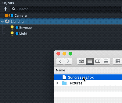 You can import your 3D object by dragging your file into the Objects panel.