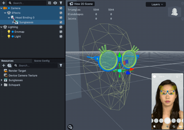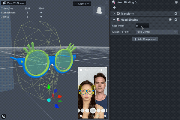 You can attach 3D Objects to your head so that they track to a point on your head. This is great for adding accessories such as glasses, headwear and other 3D models.