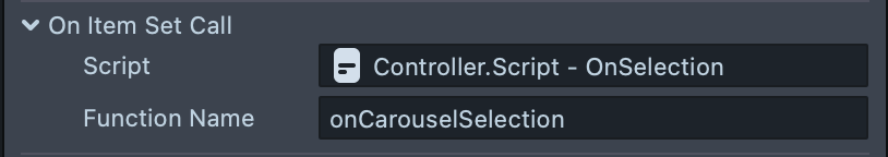 2. Function Name: Set to the name of the function that should be called when a selection is made ("onCarouselSelection" in this example).