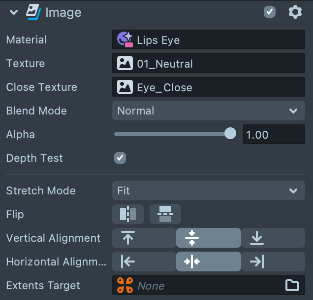 With the Tween Value Script Component located on the Mouth Screen Image object, you can set up a ping pong loop the Open Close Eye value between 0 to 1 to make the blink animation.